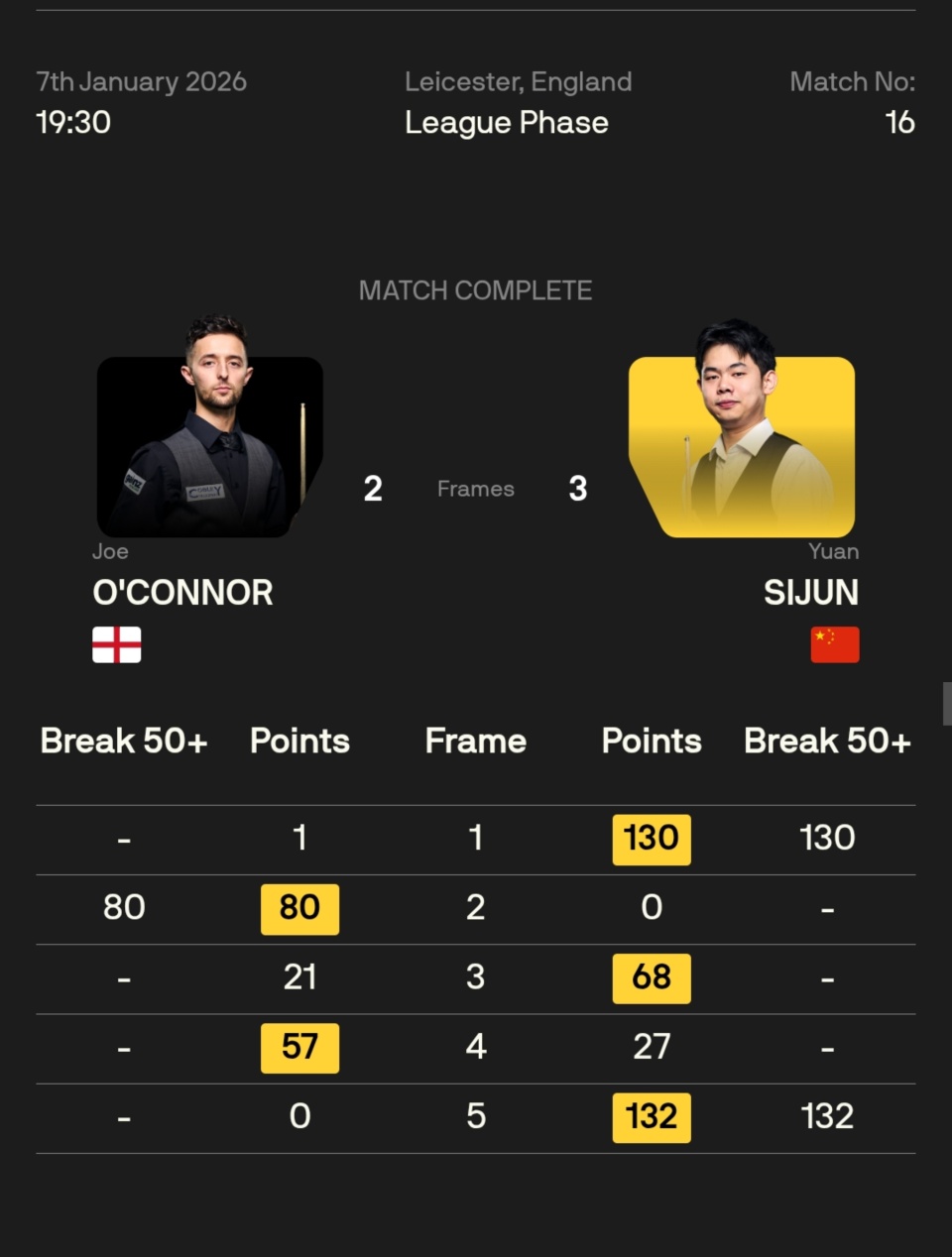 乔·奥康纳 3-1 袁思俊