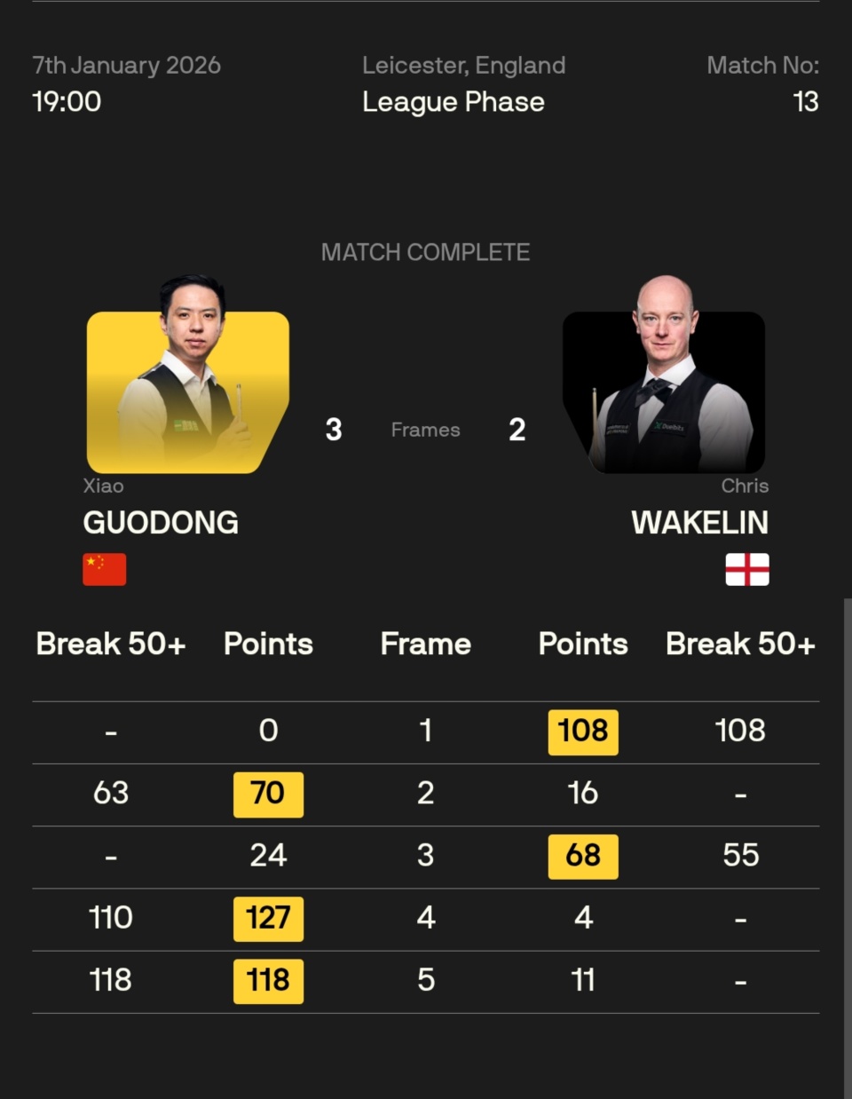 肖国栋 3-2 克里斯·韦克林