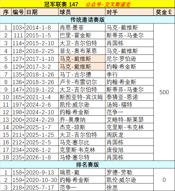 这是冠军联赛(传统邀请赛版)历史上的第18杆147。今年的冠军联赛,又已经产生两杆147了。