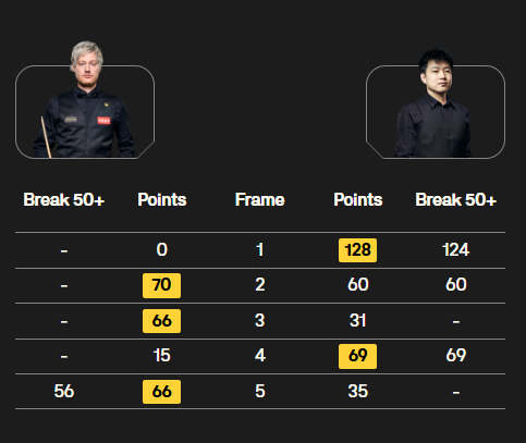 小组决赛,罗伯逊首局轰134分大号破百,但随后连丢3局,塞尔特3-1获胜。