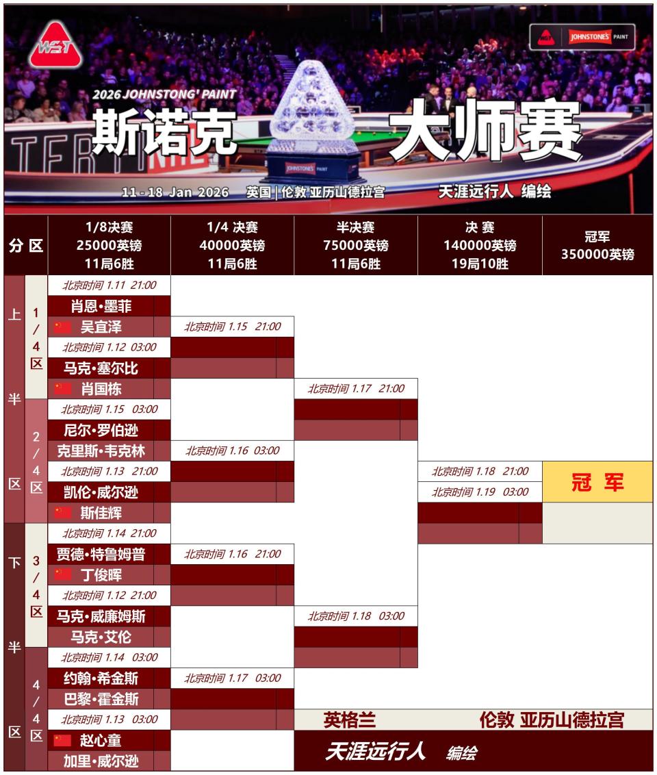 斯诺克大师赛那些事,最新完整签表、赛程观战指南,历届冠亚军榜
