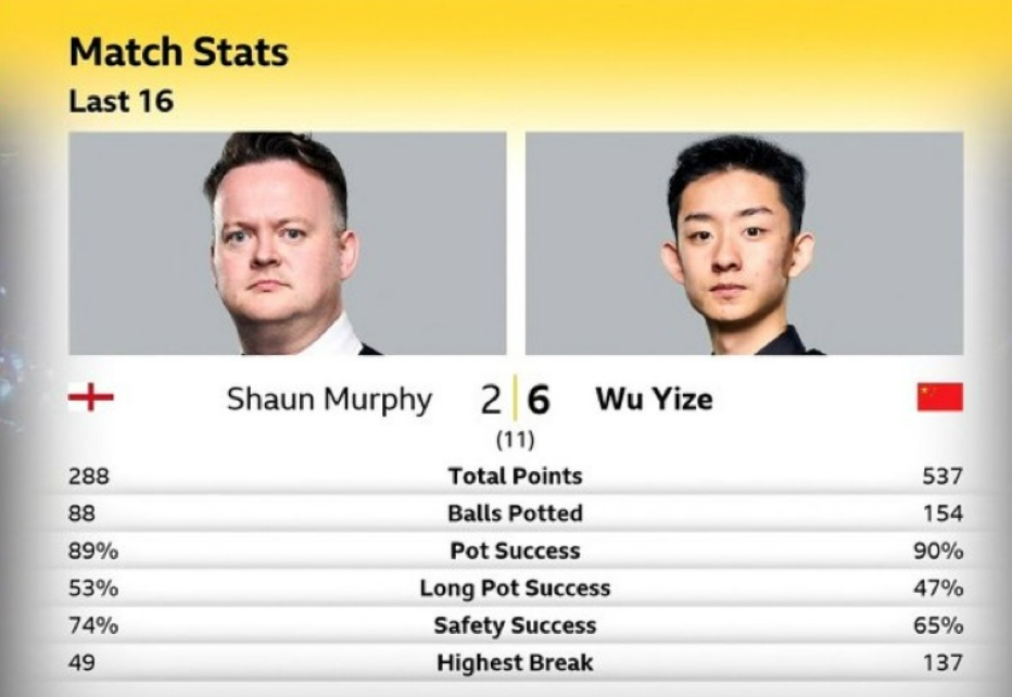 这场比赛,吴宜泽发挥还算可以,但墨菲表现比较拉垮,失误不断。