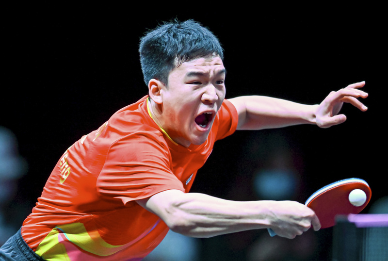 1月11日,林诗栋在比赛中。
