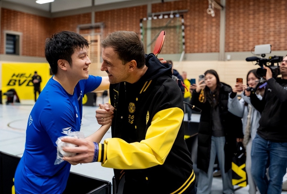 樊振东的统治力是肉眼可见的,对阵米诺一战只让米诺三局拿18分,对阵卡尔松一战,体能略有下滑的小胖也只让卡尔森三局拿到20分,赛后多特蒙德俱乐部的大使波尔也为樊振东献上拥抱致意。