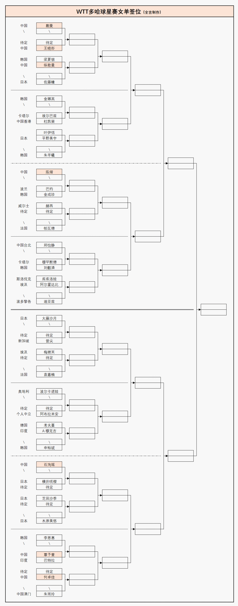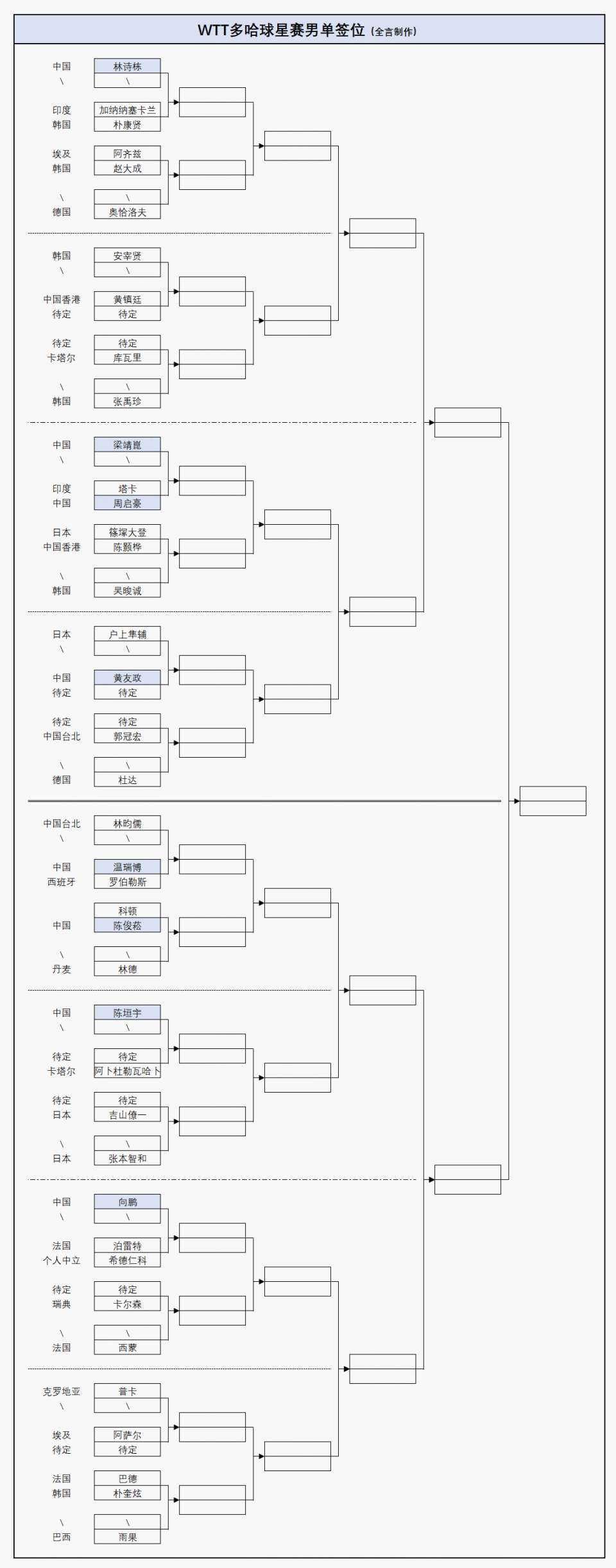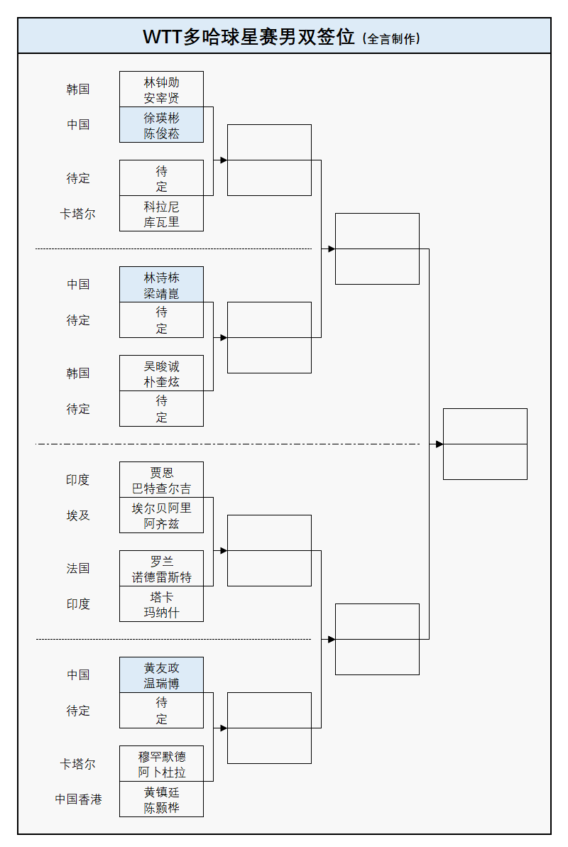 WTT多哈球星赛:国乒首日6战全胜!1月14日赛程公布,附正赛签表
