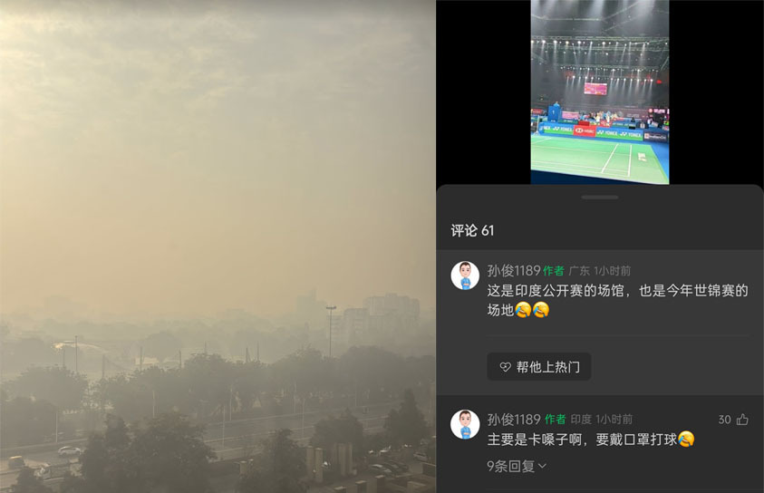 中国男单教练孙俊也证实了"戴口罩打球"的问题,还直言空气污染导致喉咙不适。中国香港混双名将谢影雪晒出了印度PM2.5超标的照片。其实这也不是印度第一次如此,23年印度羽毛球公开赛,中国队员集体腹泻退赛;25年亚乒赛被曝出洗澡水浑浊,羽毛球队称"洗澡后拉肚子"。印度公开赛不仅场地脏,而且还冷,有些球员热身赛时只能穿着长袖或者是2件外套来保暖。