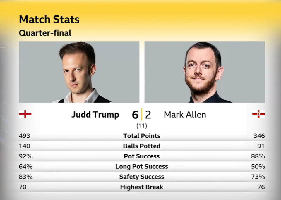 凌晨时段,世界第一的王牌特鲁姆普对阵小钢炮马克·艾伦。