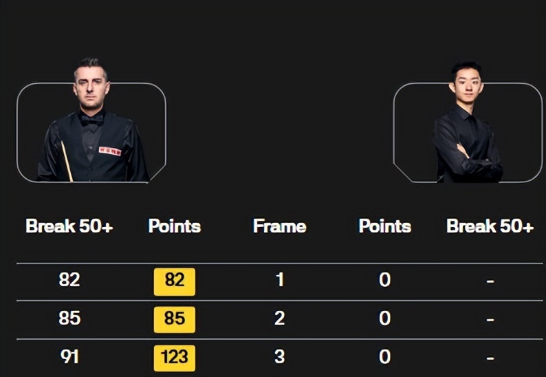 但这次遇到状态好的塞尔比也没办法,前有宾汉姆0-353,现在换成吴宜泽0-290,塞尔比打出单杆91分、85分、82分连赢三局,以82-0、85-0、123-0结束比赛,哪怕是冠军联赛,这种情况也非常罕见,只能说塞尔比的发挥太过出色,吴宜泽和宾汉姆两大名将甚至一次上手机会都没有。