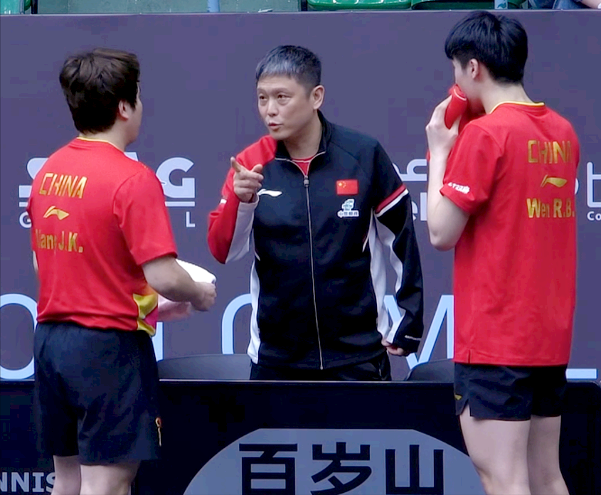 比赛开始后,梁靖崑/温瑞博遭到对手的猛烈冲击,长期没有合作的二人在场上还是打得有些被动,但两人依旧顽强与对手进行纠缠,随后双方战至最后2分决出胜负,最终国乒组合以11-9艰难先下一城。