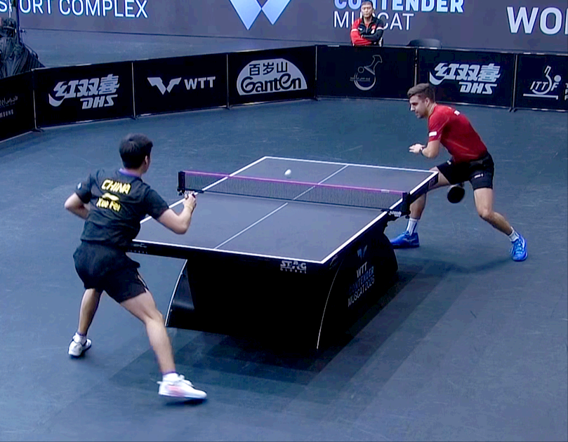 第二局达科再次开局领先压制薛飞,通过反手的强势弧圈球进攻破防后形成积极主动的相持,而进入这一环节后直拍运动员就会明显被动,很快薛飞又7-10落后紧接着再丢1分,最终以7-11再负被逼入绝境。