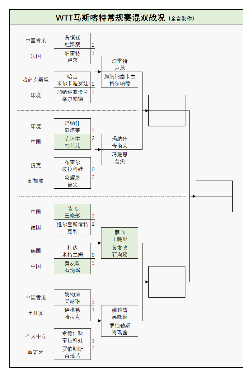 17:20,覃予萱/纵歌曼VS扎里夫/卢茨(法国)、石洵瑶/王晓彤VS戈什/科特查(印度);