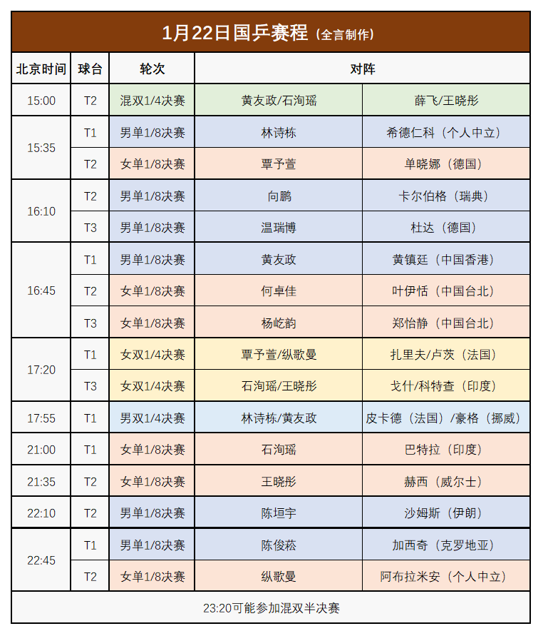 WTT常规赛:1月22日赛程公布!国乒迎战强敌,面临外战考验