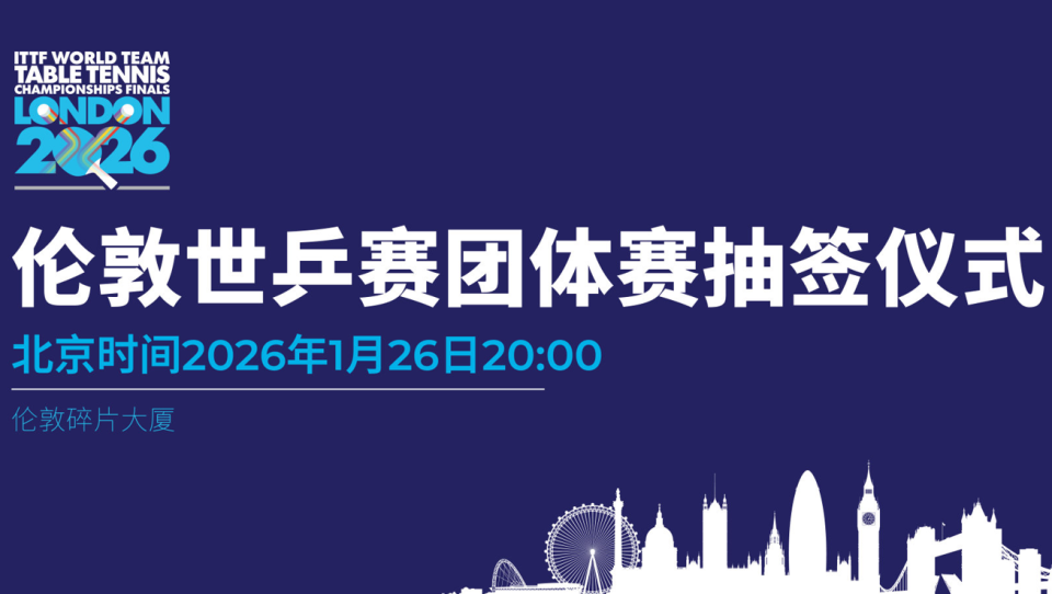 2026年1月22日,国际乒联正式宣布将在1月26日晚20:00举行伦敦团体世乒赛的小组赛抽签,同时公布相关的规则,而这距离比赛开打(4月28日)还有三个多月时间,对此许多球迷感到意外。