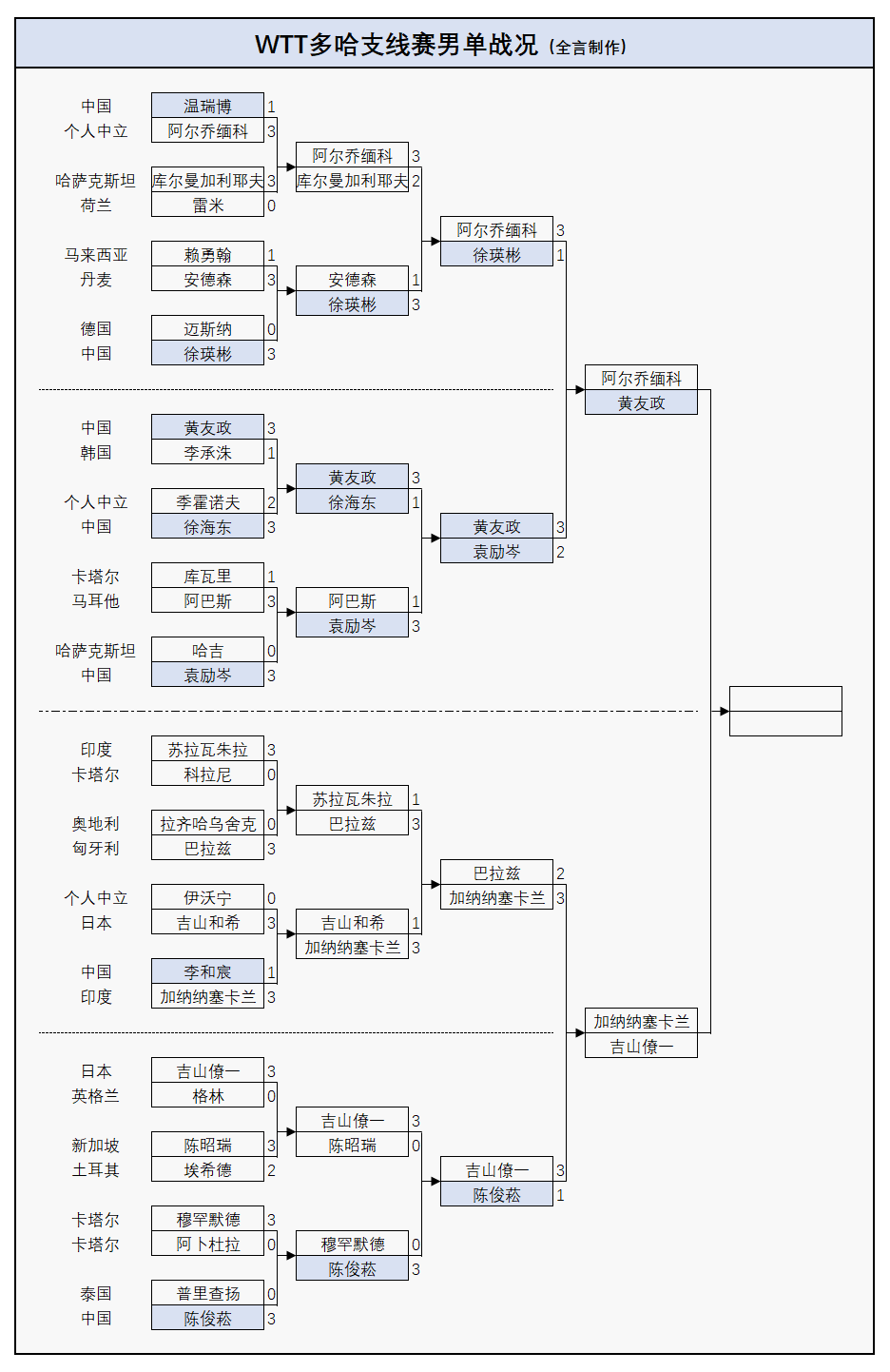 男双:黄友政/温瑞博3-0徐海东/陈俊菘、徐瑛彬/袁励岑3-2吉山和希/吉山僚一(日本);