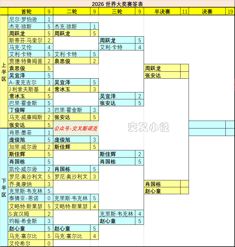 2. 心惊肉跳,赵心童决胜局险胜韦克林,周跃龙险胜卡特,中国军团包揽四强