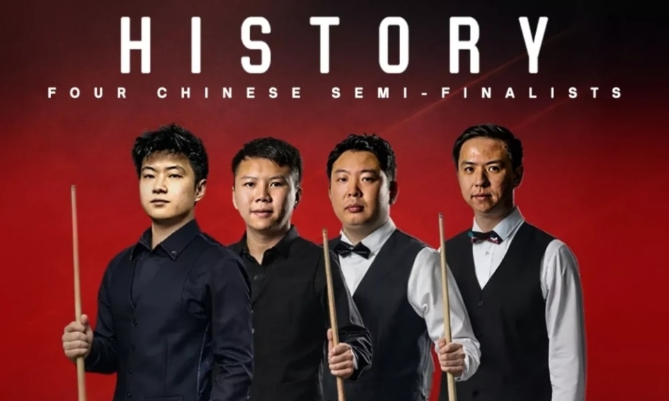2026斯诺克世界大奖赛半决赛将于7日在香港启德体育馆举行,届时仍有四位中国选手参与角逐。这标志着斯诺克历史上首次所有半决赛选手均来自中国,并且中国成为继英格兰和苏格兰之后,第三个在排名赛此阶段实现包揽的国家。