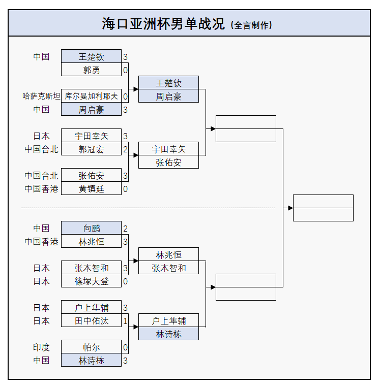 2026年2月7日,乒乓球海口亚洲杯结束男单1/8决赛较量,国乒目前已经输掉一半人马,剩余王楚钦、林诗栋、周启豪3人晋级;日本也是3位运动员过关,张本智和在列,此外中国香港、中国台北各1人入围,详细战况请看下文。