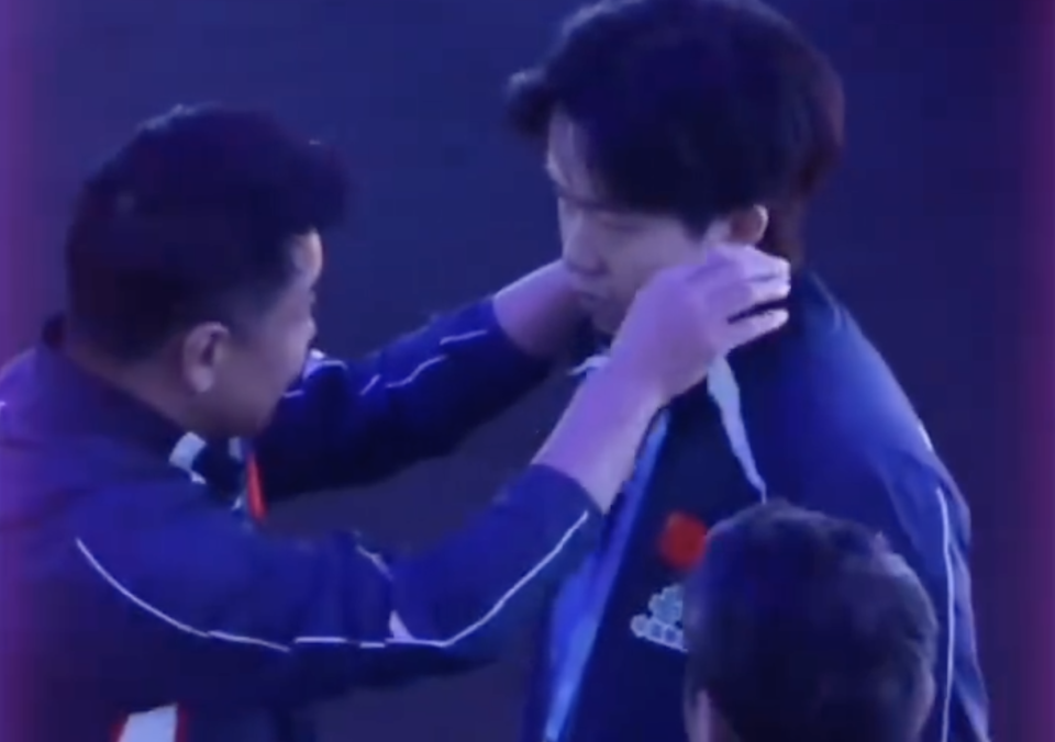 靠着王皓的指导,王楚钦在比赛中恢复了冷静,一个球一个球地慢慢追。在先后输掉第一局及第三局的不利局面下,王楚钦强势逆袭。赢球之后,他也激动地与王皓进行了隔空互动。王皓握拳呐喊,有球迷认为他是在向张本智和“复仇”。