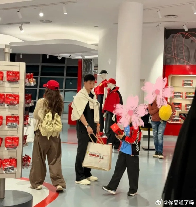 马龙还和妻子夏露带着孩子们去当地商场购物,夏露也饶有兴致地看着各种商品,看看有没有打折,两个孩子已经找到了各自喜爱的玩具。