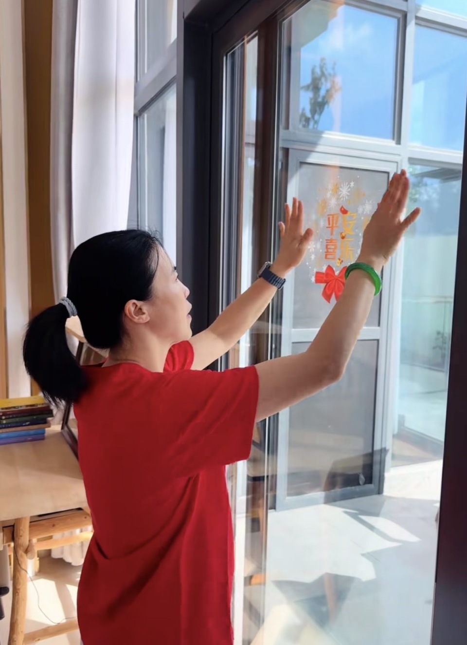 王楠贴窗花时候的模样,她现在的生活重心都转移到家庭中,打扮得非常朴素。穿一件红色T恤、扎着高马尾,而手腕上最醒目的就是网传价值1800万的祖母绿手镯了。