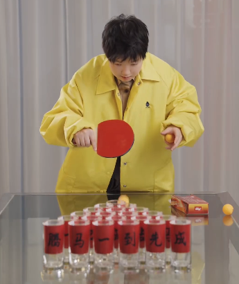 第二个,通过合作的品牌。无独有偶,在除夕的当天,刚刚和孙颖莎有过合作的国际知名时尚杂志《ELLE》官方晒出了关于孙颖莎的一段视频。视频里,孙颖莎穿了一件非常喜庆的衣服,她拿着球拍和乒乓球站在球台前,然后将手中的乒乓球挨个打进乒乓球台上摆放的杯子里。对了,杯子里有相应的文字。最后,孙颖莎打了两个词语“马到成功”“一马当先”,而这就是她送给大家的祝福。