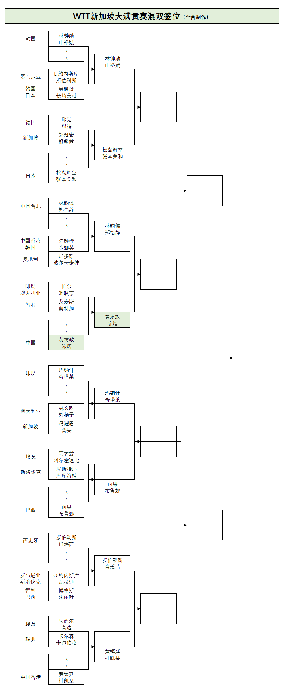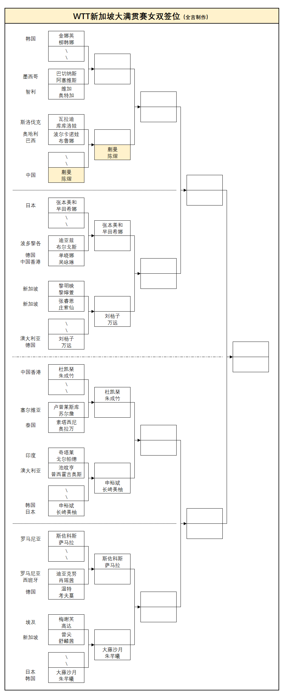 WTT新加坡大满贯:多位名将已出局!2月21日赛程公布,附5项签表