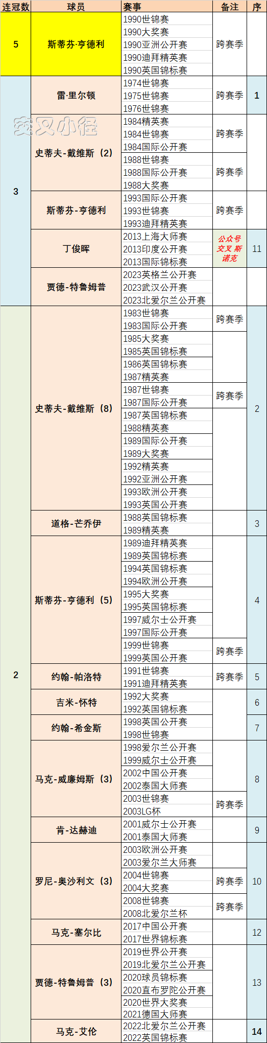 【附排名赛连续站赛夺冠数据】