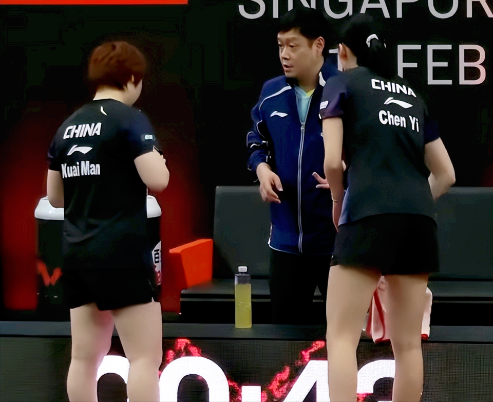 第三局张本美和/早田希娜再次发力拉开差距,蒯曼/陈熠随即在5-6被逆转的情况下用掉暂停机会,接受邱贻可教练的场外指导。再次投入比赛后,两位国乒小将未能找回状态,结果同样输了一个6-11,由此而大比分1-2落后陷入绝境。