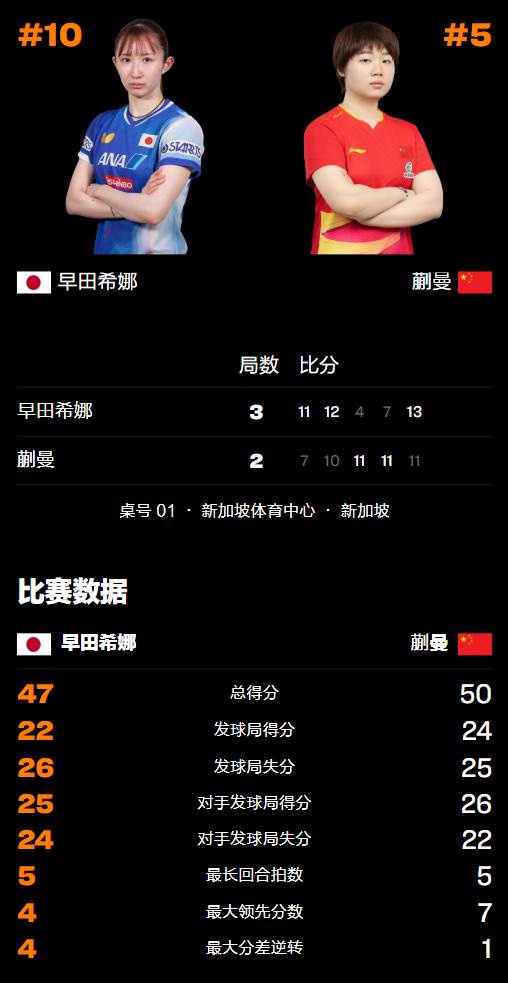 WTT新加坡大满贯:国乒再输日本!蒯曼错失赛点2-3输早田希娜