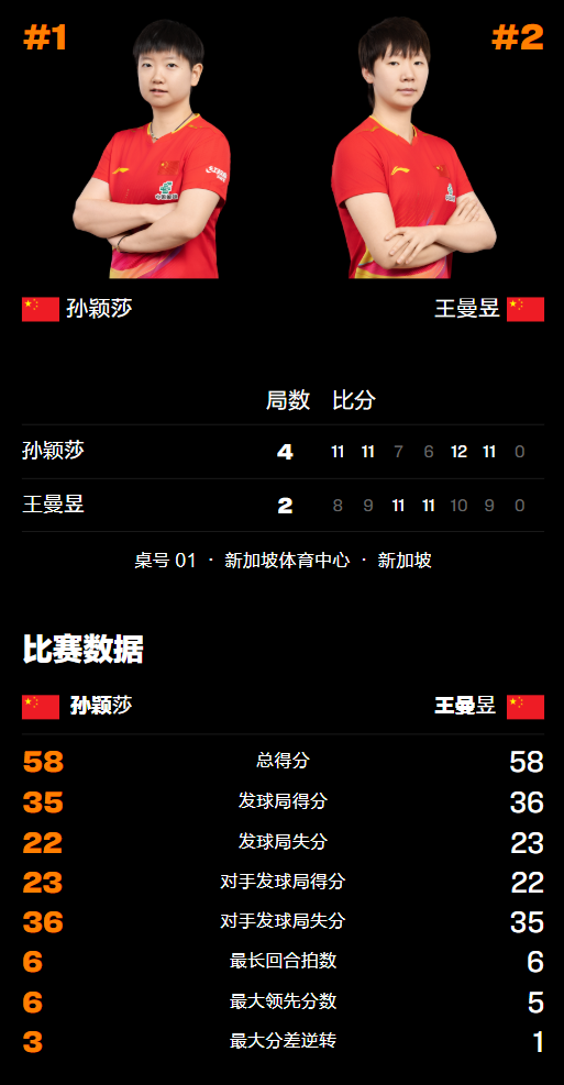 孙颖莎卫冕冠军!新加坡大满贯决赛4-2胜王曼昱 喜提68万元奖金