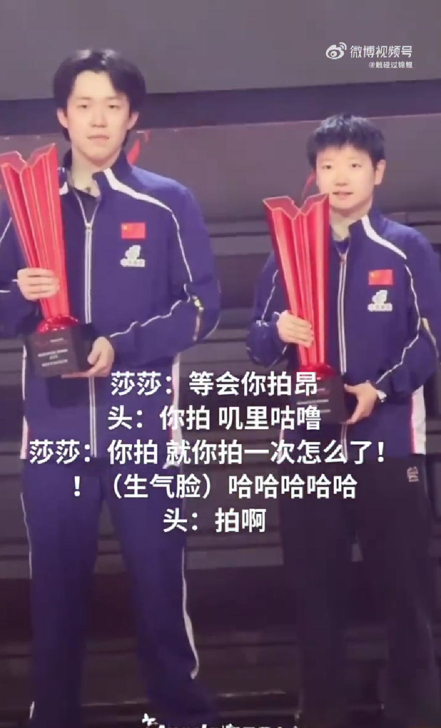 孙颖莎苦着脸说道,“你拍,你拍!”