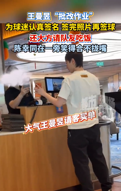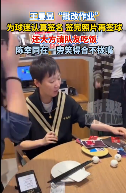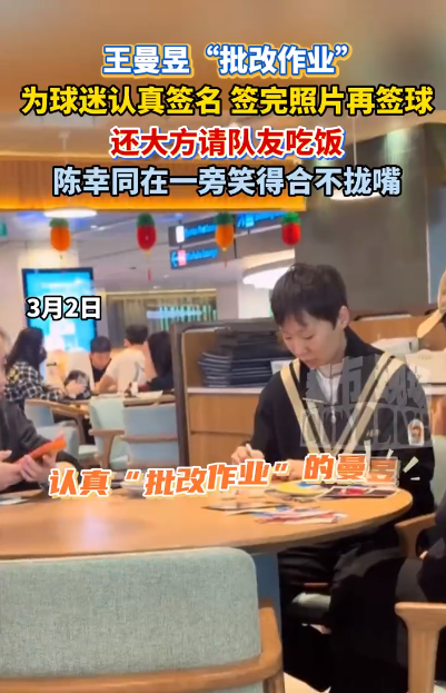 马上就有球迷围了上来,王曼昱现场“批改作业”,为球迷认真签名,