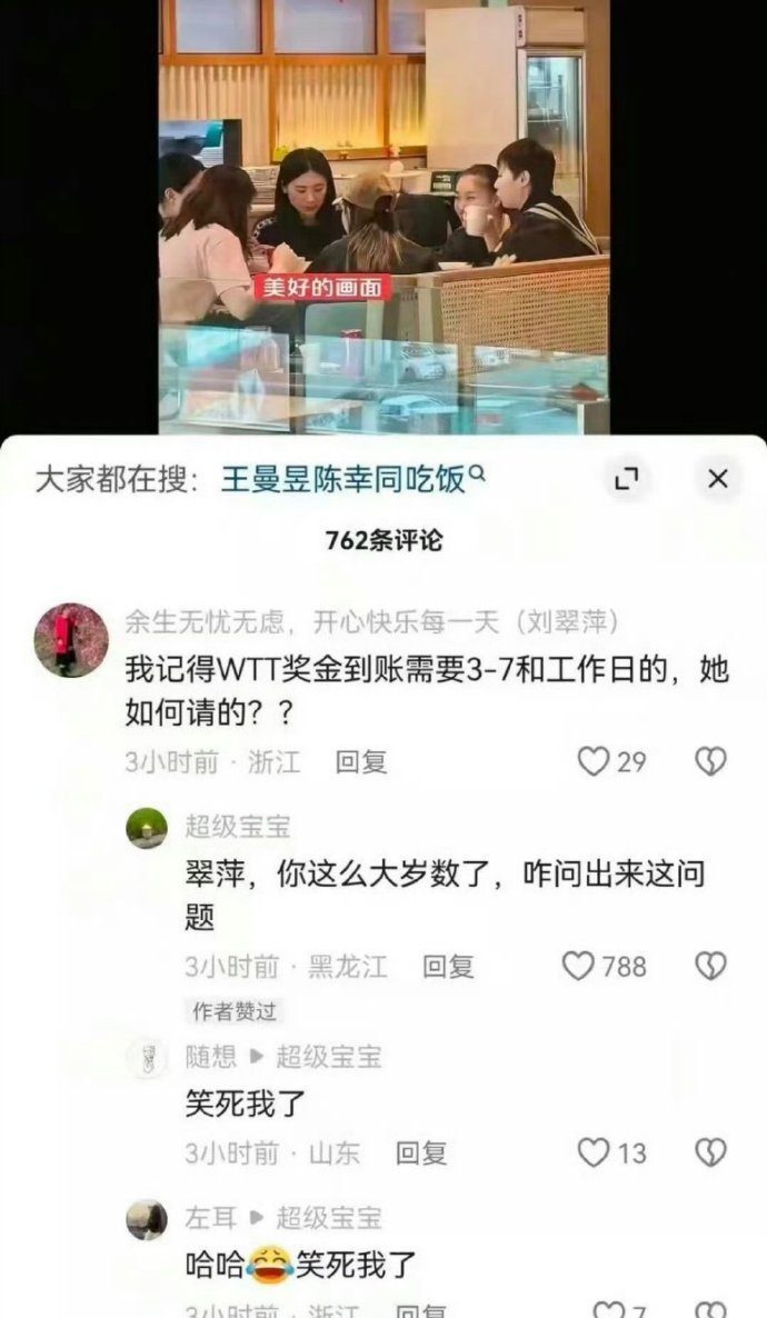 有趣的是,一位网友提出疑问,“我记得WTT奖金到账需要3-7个工作日到账的,她如何请的???”