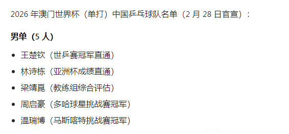 按照规则,樊振东是去年全运会单打冠军,理论上拥有直接入围资格,可以代表中国队出战。但现实是:截至 2026 年 3 月 5 日,官方仍未公布他是否参赛。