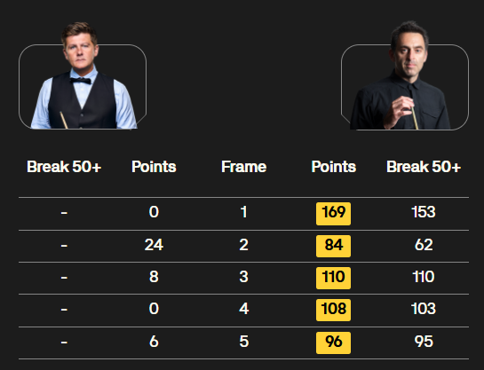 1. 下午场:吴宜泽5-1大胜艾伦,奥沙利文轰创纪录单杆153分,零封瑞恩·戴