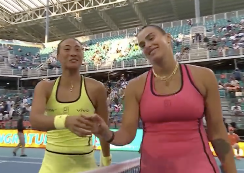 北京时间3月24日凌晨,WTA1000迈阿密站1/8决赛,23岁的郑钦文0-2不敌27岁的萨巴伦卡,无缘8强。赛后,郑钦文微笑与萨巴伦卡握手。对于输给萨巴伦卡的结果,郑钦文并不意外。