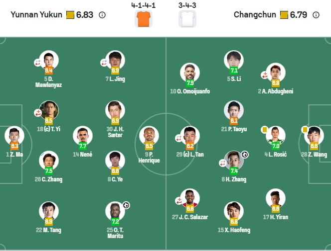 前锋:27-胡安-卡米洛(54’40-艾菲尔丁)、29-谭龙(101’11-田玉达)、10-奥莫伊胡安弗