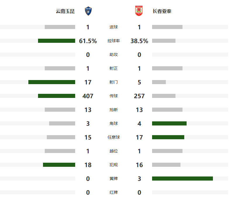 点球绝平!第95分钟,内内禁区内准备射门时和身后的谭龙发生身体接触后倒地,主裁傅明判罚点球;谭龙表达不满,但VAR介入后坚持原判,奥斯卡第99分钟主罚点球骗过门将打入球门左侧死角,玉昆1-1扳平比分。