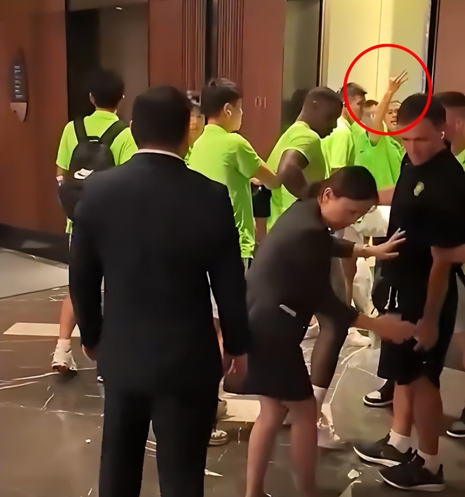 就在电梯即将关门时,队长王刚依然怒气未消,对着球迷口吐芬芳,并喊着“怎么啦,怎么啦?”。不知咋的,这位前国脚再次被刺激一般,再次怒气冲冲地要冲出电梯找谁算账,好在电梯门口两名服务员严防死守,这才把国安球员又一波进攻按在电梯里。