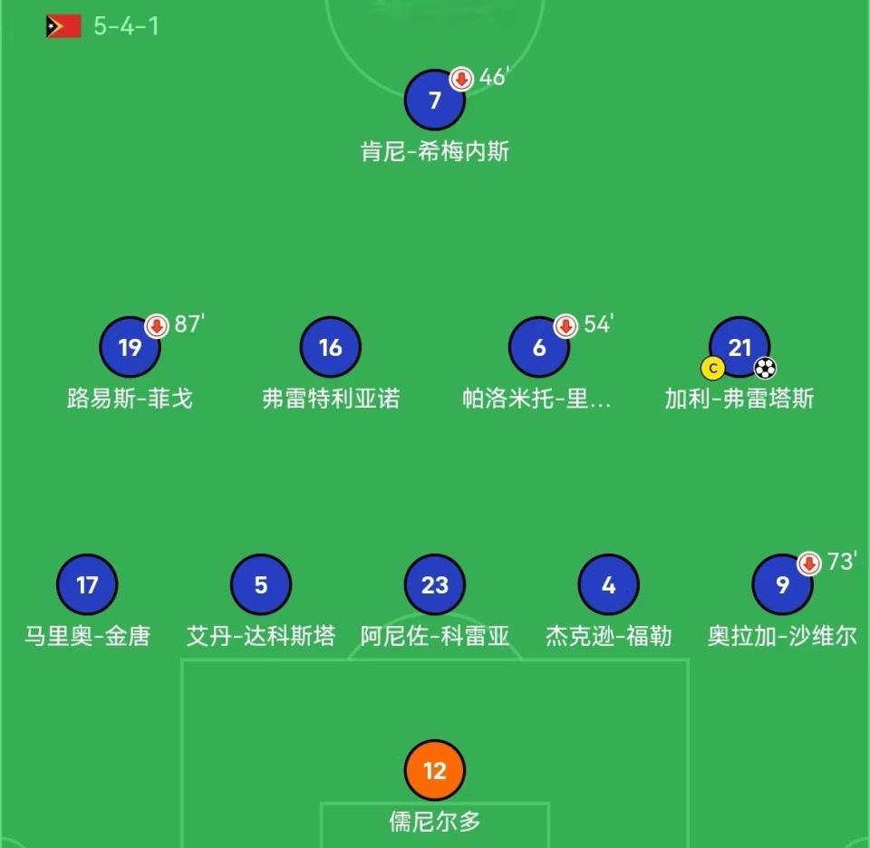 与此相比,东帝汶U23首发阵容同样拥有路易斯菲戈、科雷亚、福勒、沙维尔和希梅内斯等球员,替补席上还有卡纳瓦罗和莫德里奇,但这可不是球迷们所熟知的那些足球明星本尊,只是名字相同而已,甚至怀疑他们就是崇拜偶像而改的名。这些球员大部分都是业余球员,也有小部分效力于澳大利亚和东南亚的职业联赛,其中有不少球员曾经入选过东帝汶成年国家队,身价最高的是他们的前锋弗雷塔斯,效力于印尼联赛的泗水队,目前身价20万欧元。