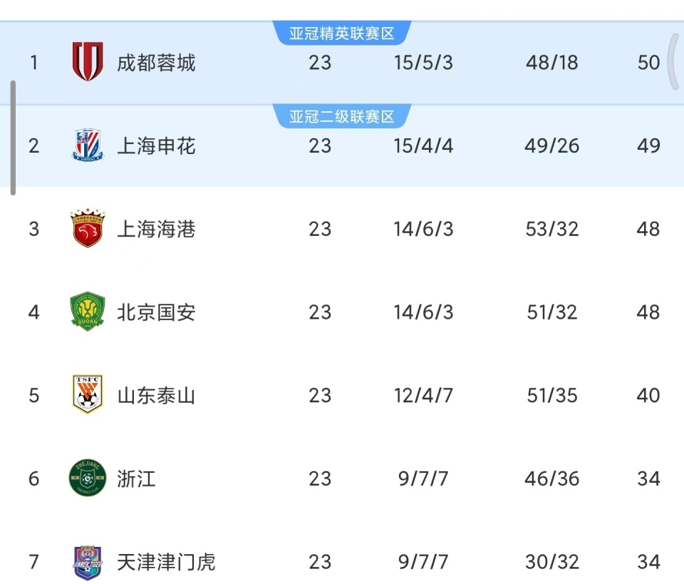 在赢下这场关键战役后,成都蓉城的积分来到了50分。而巧合的是,第二天申花0比1输给武汉三镇,国安更是0比6被山东泰山血洗。两支争冠热门球队的失利,让成都蓉城直接登上了积分榜榜首的位置。这看似微弱的分差,却在争冠的关键时刻显得尤为重要,成都蓉城也由此掌握了争冠的主动权。