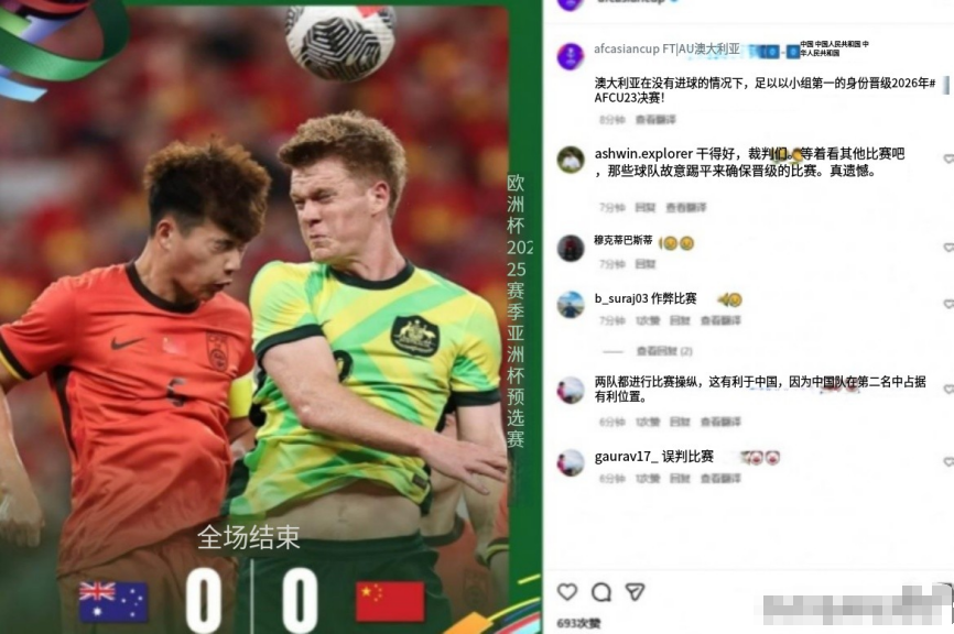 赛后部分国外球迷在社交媒体上对比赛真实性提出质疑,认为澳大利亚队下半场消极进攻的表现存在疑点。需要指出的是,在双方只需一场平局即可确保出线的情况下,采取保守战术是合理的竞技选择。任何冒险进攻都可能给对方创造反击机会,进而导致出线形势逆转。将这种战术选择与假球相关联缺乏事实依据,属于不实指控。