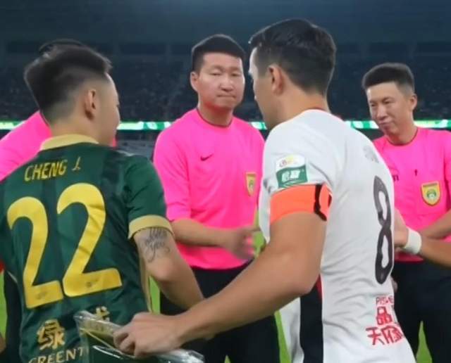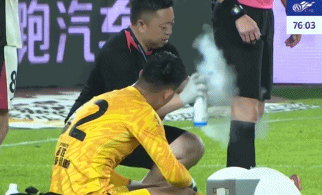 第三个,最为罕见和戏剧性的一幕出现在第77分钟。当时浙江门将刘殿座受伤倒地,队医进场治疗。结果就在这个空档,36岁的主裁判单丹奥竟然因长时间高强度执法出现大腿后侧抽筋,不得不让蓉城队医顺带给自己喷上喷雾缓解疼痛。主裁判在比赛中“自救”的画面,足以说明这场比赛的节奏和强度到底有多夸张,也让这场平局更添一丝传奇色彩。