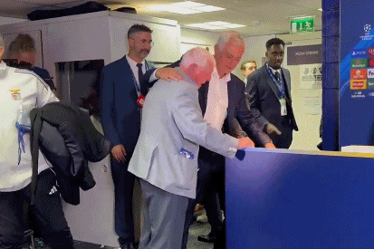 3万人鼓掌、高歌的场面,让穆里尼奥颇为感动。62岁的狂人挥了挥手,送上飞吻,表达感谢。BBC表示,此时的穆里尼奥,少了些狂傲,反倒是有几分羞怯(sheepishly)。他是本菲卡主帅,需要将100%的注意力集中在球场上。