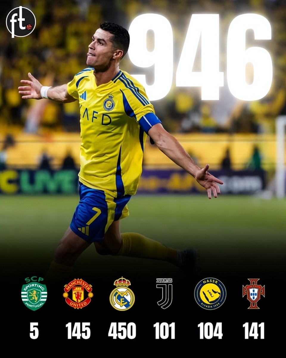 3. 克里斯蒂亚诺·罗纳尔多(Cristiano Ronaldo)——946球