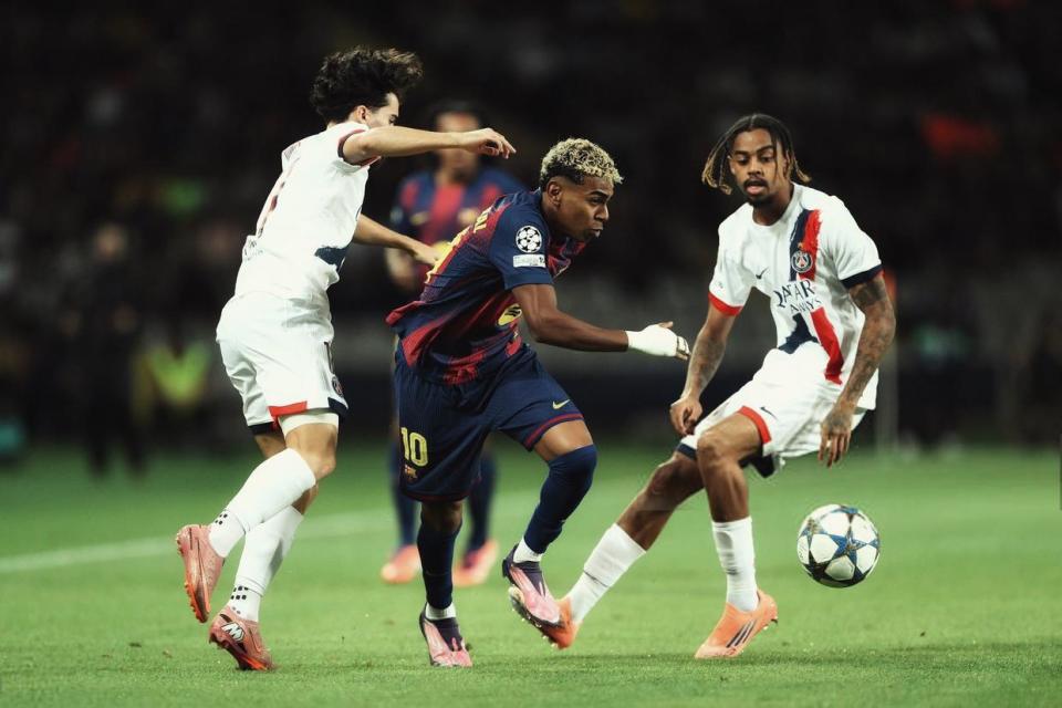 第24分钟,亚马尔中场被断,法比安-鲁伊斯直塞禁区,巴尔科拉半单刀机会推射打偏,大巴黎浪费扳平良机。第27分钟,场上出现争议判罚,埃里克-加西亚禁区内跟扎尔巴尼接触之后倒地,但裁判示意没有问题。
