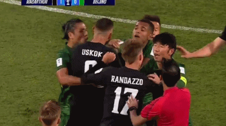 第38分钟,张源贴脸对方队长布拉坦,裁判将双方拉开。