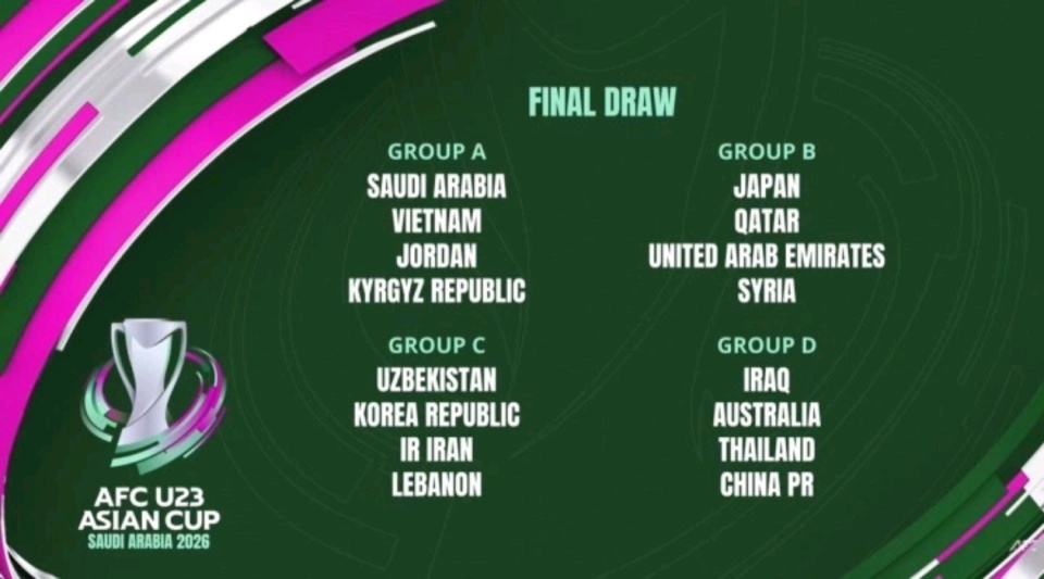 U23亚洲杯将于2026年1月7日至25日在沙特举行。对中国队而言,这次抽签结果提供了突破历史的良机,他们将力争首次从小组赛出线。