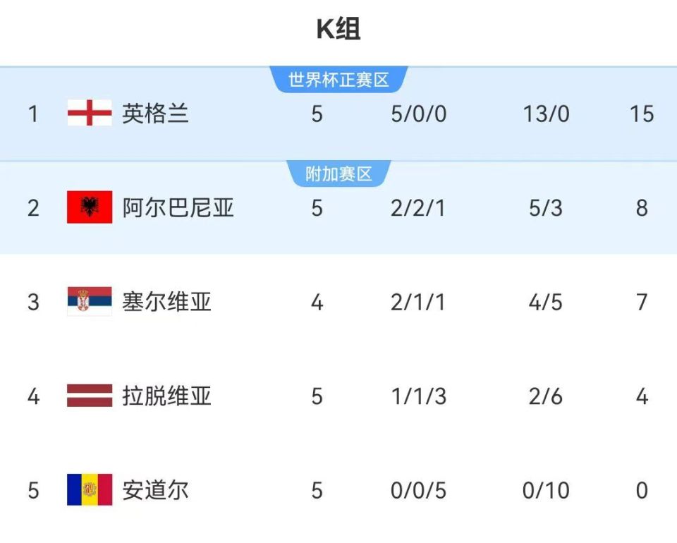 英格兰在世预赛欧洲区K组中一家独大,5战全胜,目前以7分的优势领跑,锁定小组第一直接晋级2026年美加墨世界杯那是简单的事情,或许图赫尔在练兵考察球员吧!