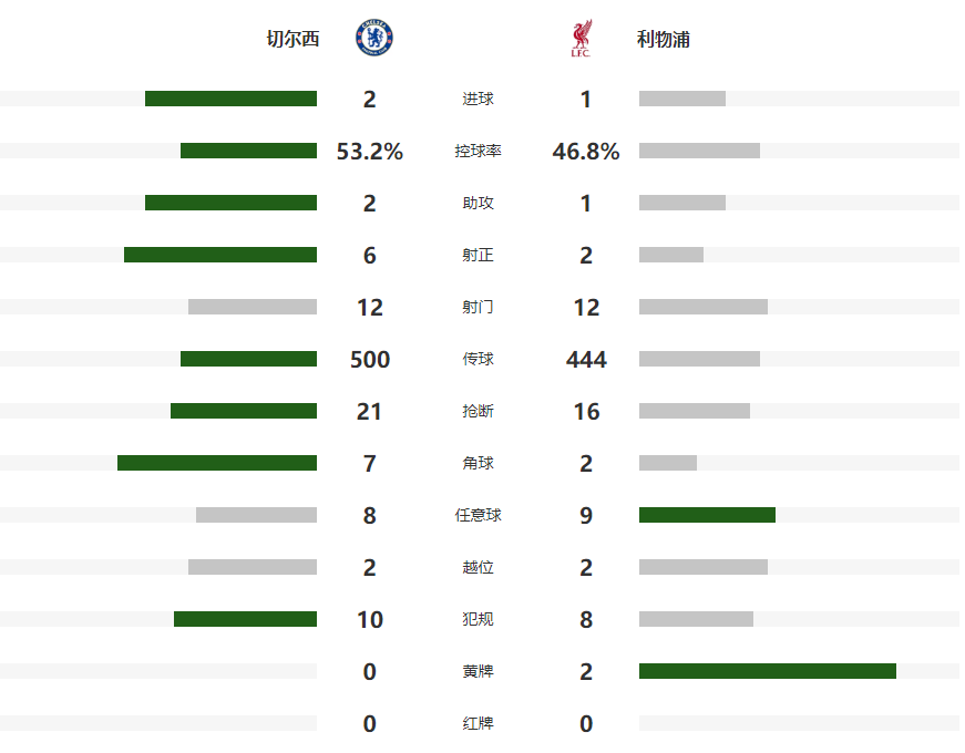 面对切尔西中场的绞杀,利物浦整个上半场没有能够形成一脚中目标的射门,进攻端的表现乏善可陈,半场比赛结束之前,今夏从曼联转投切尔西的加纳乔,差一点帮助球队扩大领先,禁区外的兜射运气不佳,皮球击中立柱出了底线。